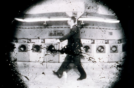 Steven Pippin connected trip wires to a row of twelve front loading washing machines and proceeded to walk, run, and ride a horse through the laundromat, thus creating his own contemporary motion studies.